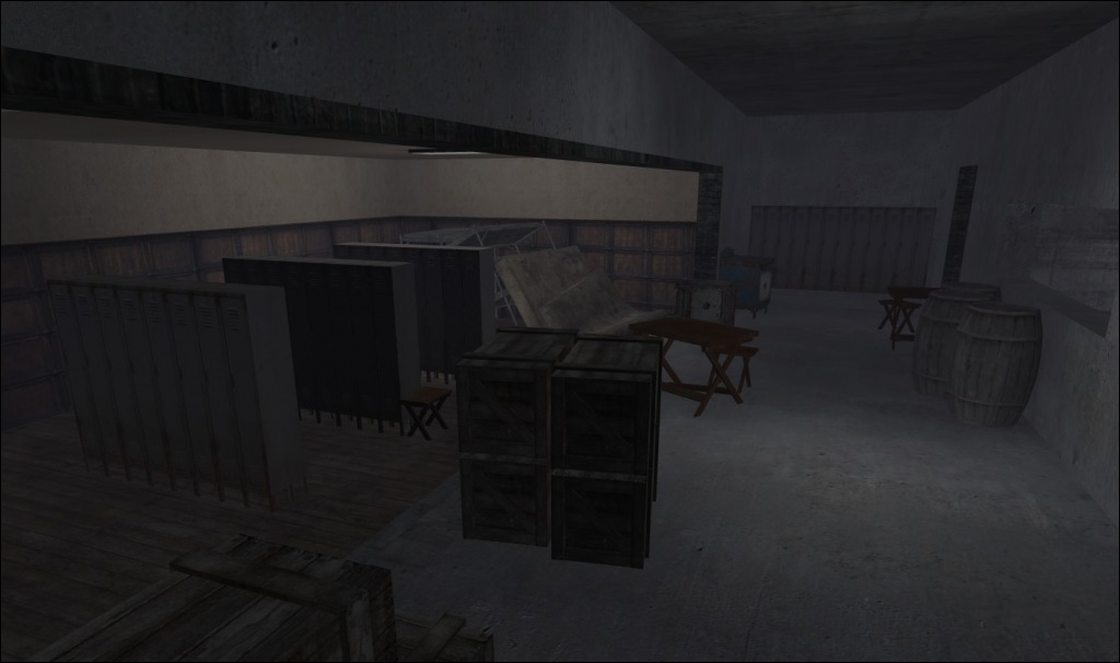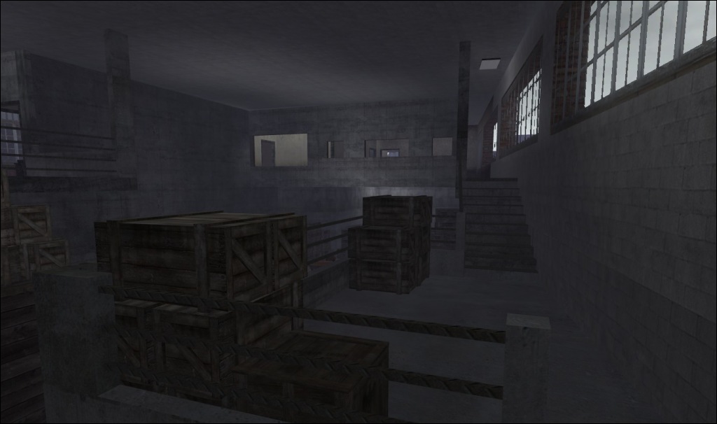 An abandoned office building with three floors and a rear parking garage, complete with tunnels, mounted guns, roof access from multiple points and additional weaponry on the roof. Offers several different styles of play, with long-range sniper points as well as lots of close-quarter action.